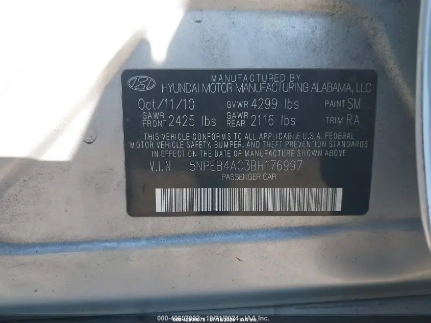 HYUNDAI SONATA MIDDLE-LOW LEVEL 2011