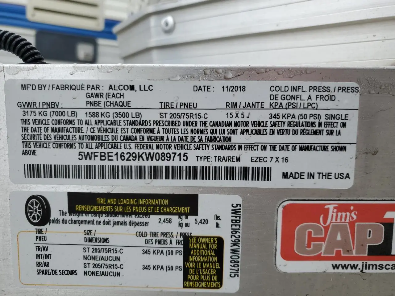 ARO TRAILER 2019 BLACK VIN: 5WFBE1629KW089715