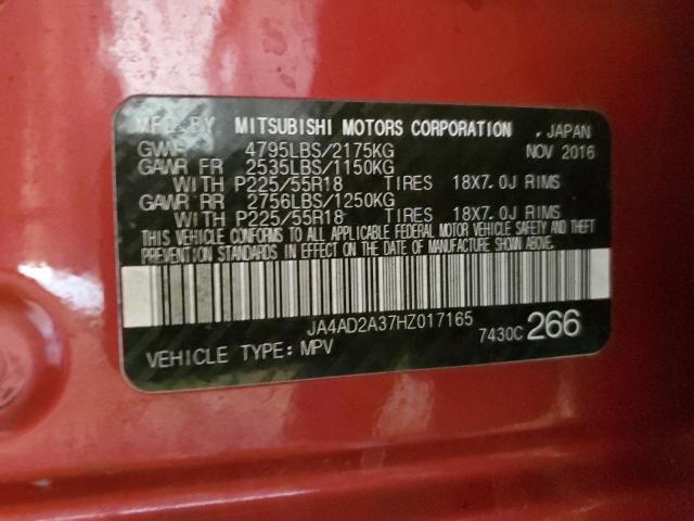 MITSUBISHI OUTLANDER 2017 LOW RED 2.4L 4 VIN: JA4AD2A37HZ017165