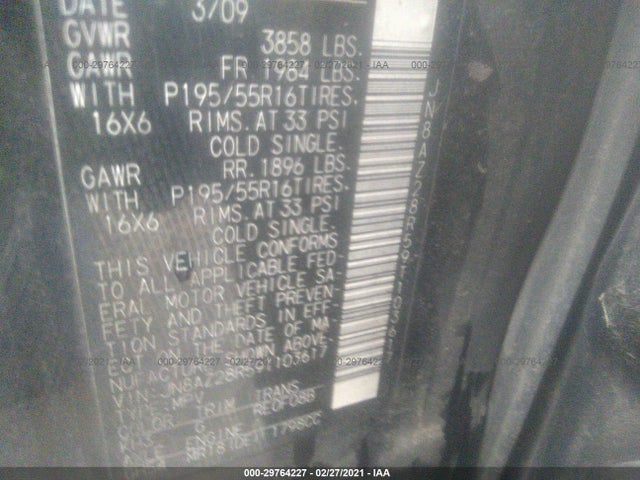 NISSAN CUBE 2009 WAGON BODY 1.8L DOHC SMPI 16-valve I4 VIN: JN8AZ28R59T103617