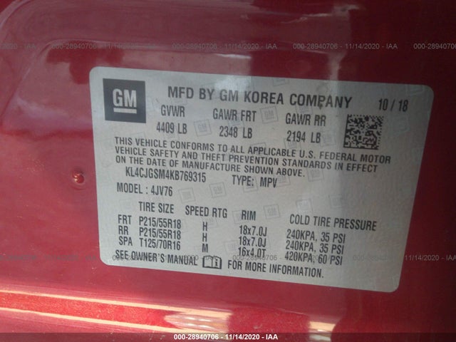 BUICK ENCORE 2019 ESSENCE AWD 1.4L I4 FI DOHC 16V NF4 VIN: KL4CJGSM4KB769315