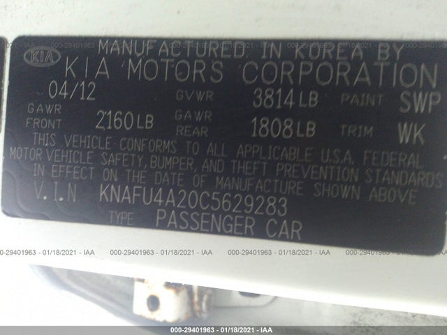 KIA FORTE 2012 GLS 2.0L CVVT DOHC MPFI 16-valve VIN: KNAFU4A20C5629283