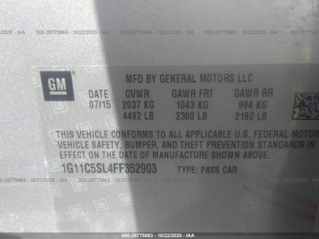 CHEVROLET MALIBU LT (1LT) 2015