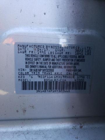NISSAN SENTRA 2017 S SILVER 1.8L 4 VIN: 3N1AB7AP1HY322668