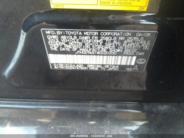 LEXUS GS 350 2008 350 3.5L DOHC 24-valve DI V6 VIN: JTHCE96S180020330