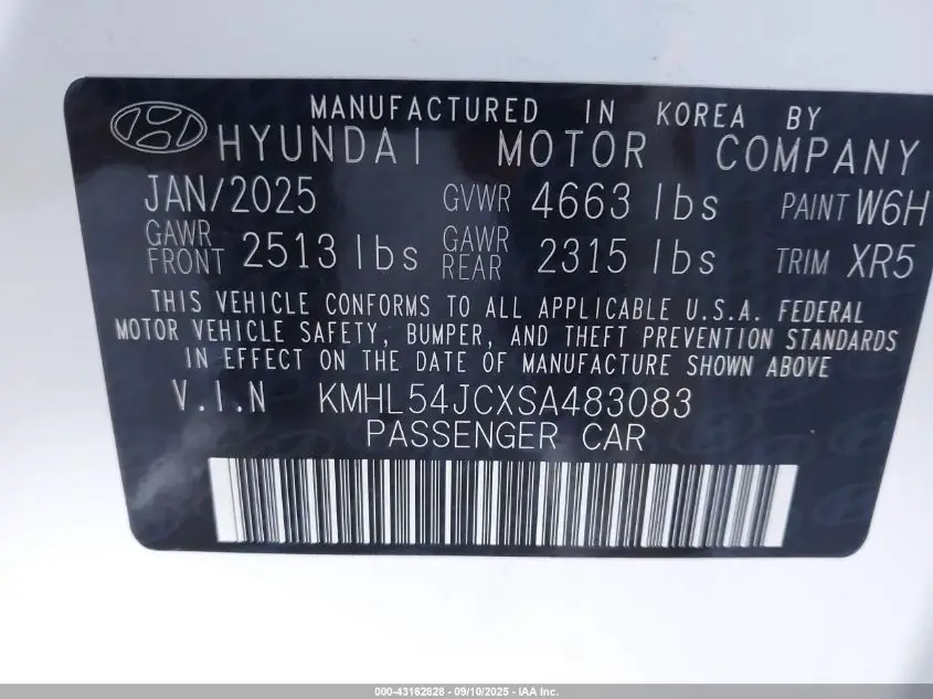 HYUNDAI SONATA 2025 N LINE White 2.5L I-4 DI, DOHC, VVT, turbo, 290HP VIN: KMHL54JCXSA483083