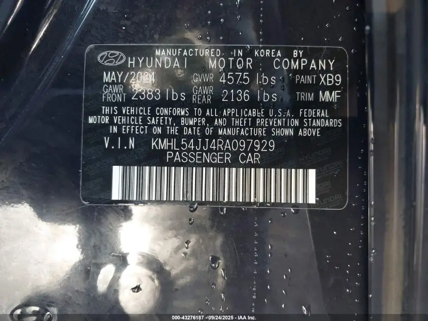 HYUNDAI SONATA 2024 HYBRID/LIMITED 2.0L I4 FI DOHC 16V NF4 VIN: KMHL54JJ4RA097929