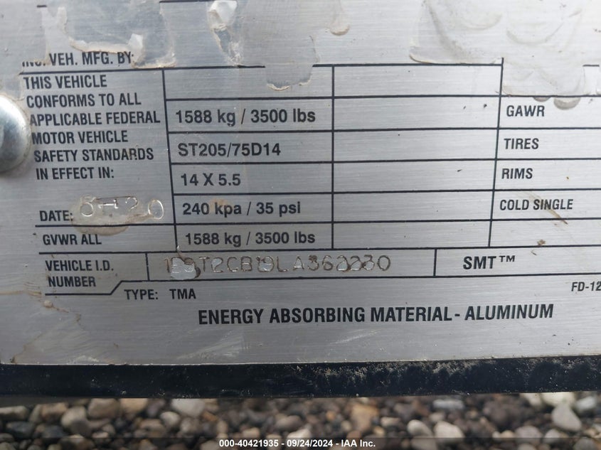 SMART T85000 ARROW BOARD MBS - 25 2020 Black VIN: 19ET2CB19LA362230
