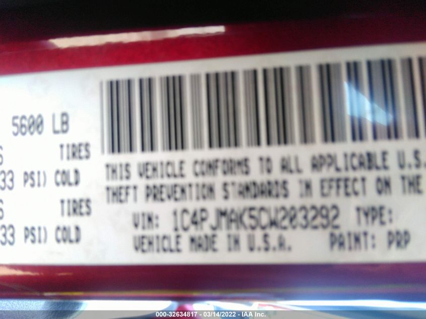 JEEP LIBERTY 2012 SPORT Red 3.7L V6 ENGINE VIN: 1C4PJMAK5CW203292