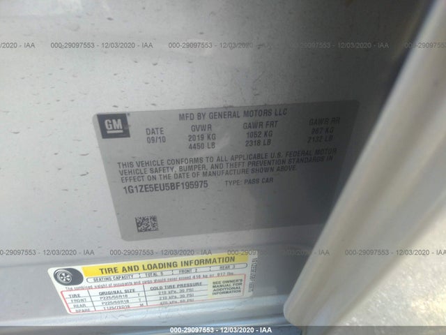 CHEVROLET MALIBU 2011 LTZ 2.4L I4 FI DOHC 16V NF4 VIN: 1G1ZE5EU5BF195975