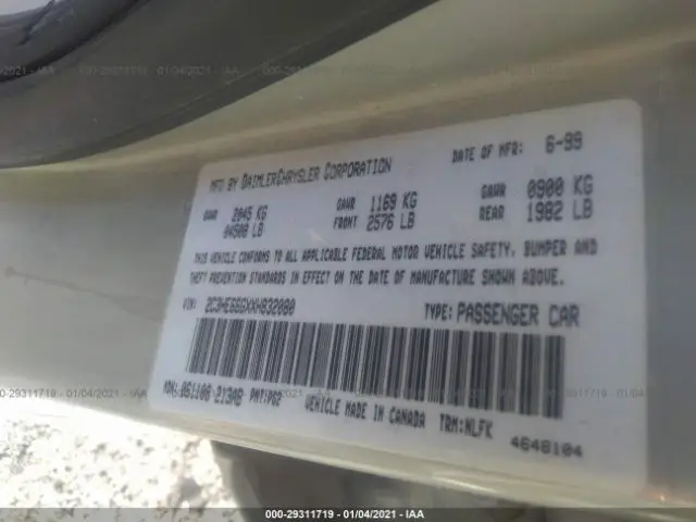 CHRYSLER 300M 1999 BASE 3.5L MPI 24-valve V6 VIN: 2C3HE66GXXH832080
