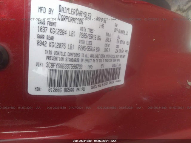 CHRYSLER PT CRUISER 2003 LIMITED/DREAM CRUISER 2.4L 148 DOHC SMPI 16-valve VIN: 3C8FY68B33T598733