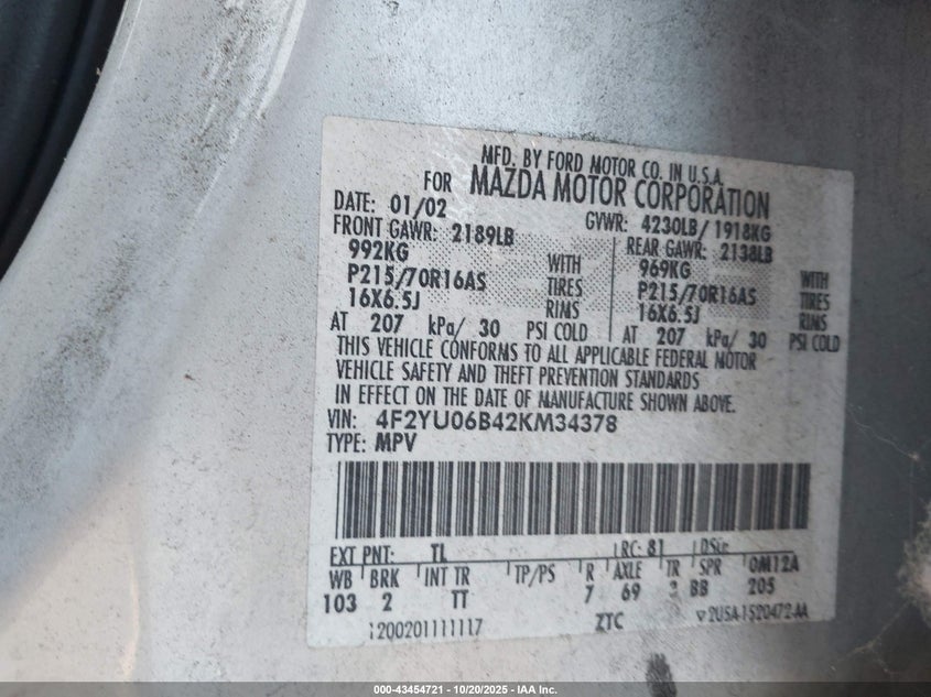MAZDA TRIBUTE DX 2002