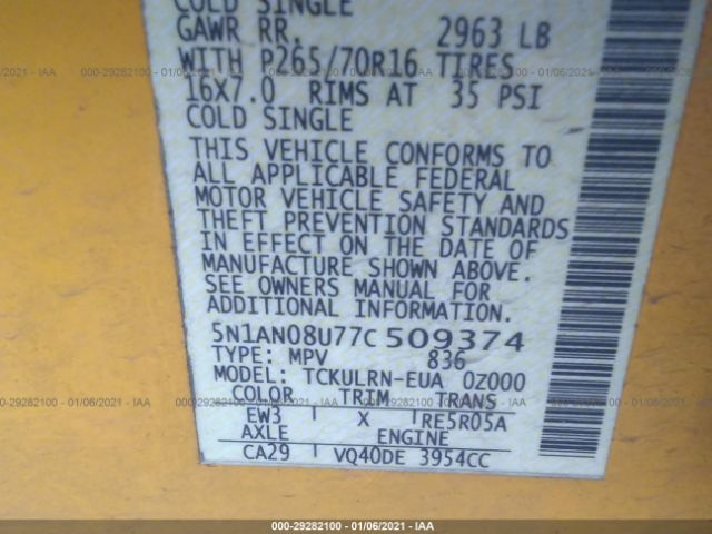 NISSAN XTERRA WAGON BODY 2007