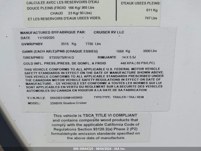 SHADOW CRUISER SHADOW TRVL 2021 White VIN: 5RXDB3128M1455902