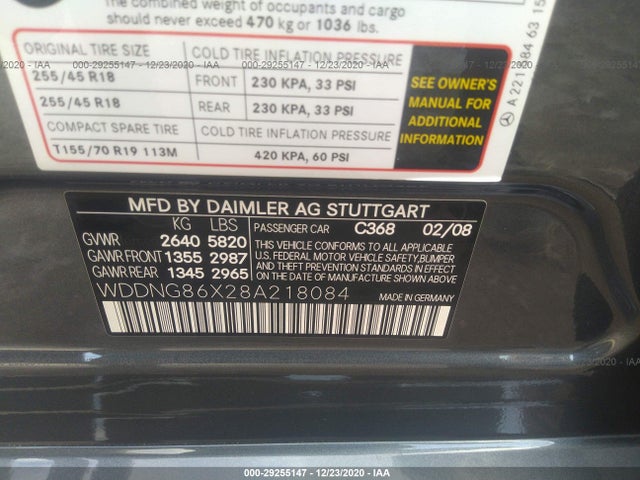 MERCEDES-BENZ S-CLASS 2008 4 MATIC 5.5L SFI DOHC 32-valve V8 VIN: WDDNG86X28A218084