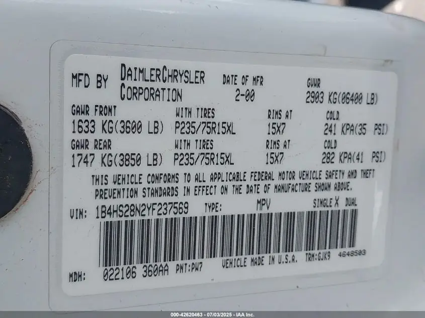 DODGE DURANGO BASE 2000