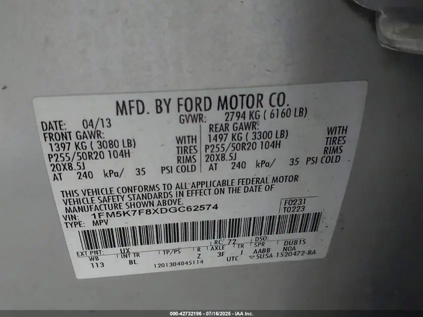1FM5K7F8XDGC62574