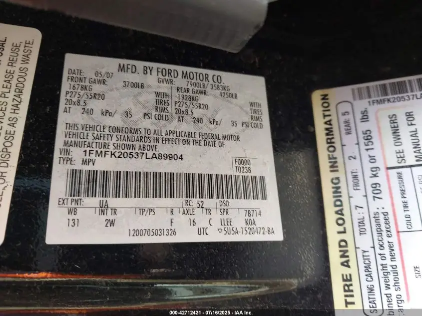 1FMFK20537LA89904