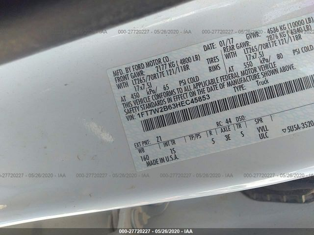 FORD SUPER DUTY F-250 SRW 2017 SUPER DUTY - SINGLE REAR WHEEL 6.2L 2-Valve SOHC EFI NA V8 VIN: 1FT7W2B63HEC45853