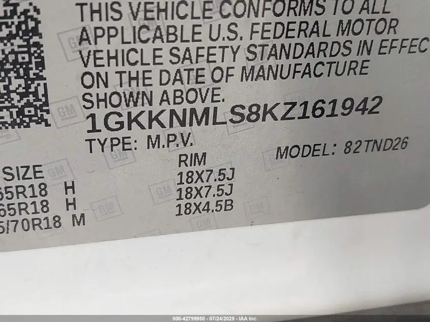 GMC ACADIA 2019 SLT-1 White 3.6L V-6 DI, DOHC, VVT, 310HP VIN: 1GKKNMLS8KZ161942