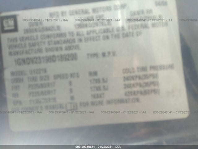 CHEVROLET UPLANDER 2008 LS APV 3.9L V6 SFI 240 hp 178.9 kW VIN: 1GNDV23198D189200