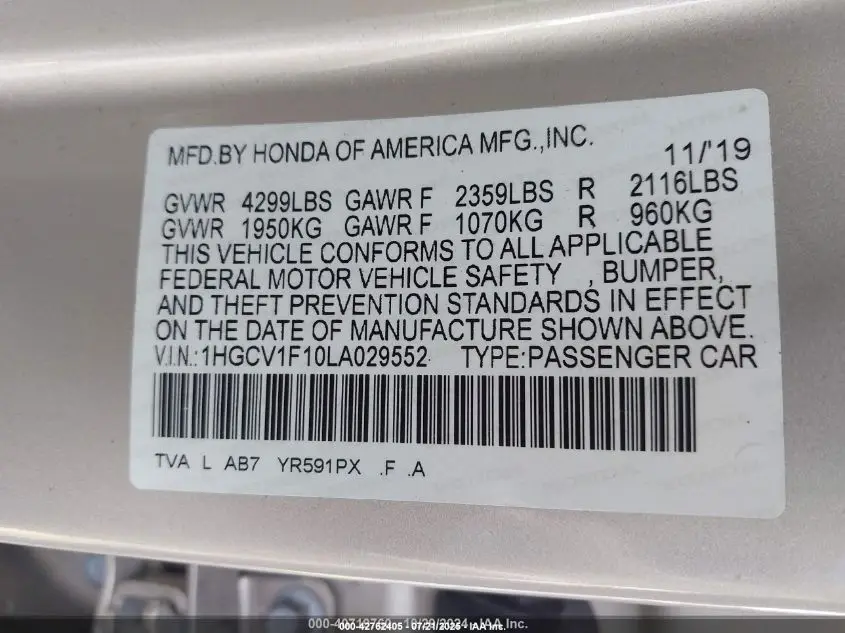 1HGCV1F10LA029552