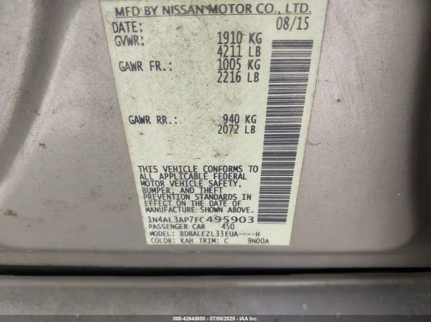 NISSAN ALTIMA 2015