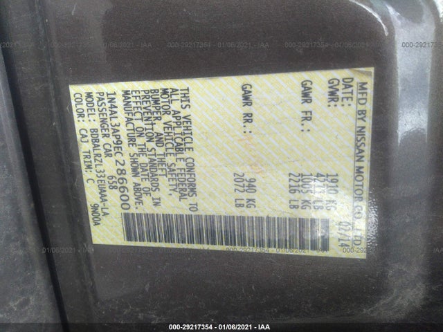 NISSAN ALTIMA 2014 2.5L DOHC 16-Valve I-4 VIN: 1N4AL3AP9EC286600