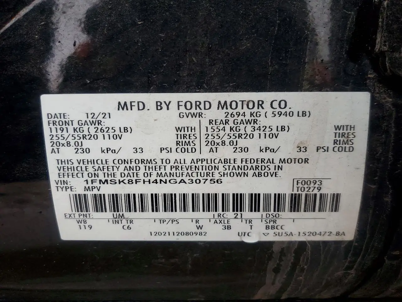FORD EXPLORER 2022 LIMITED BLACK 2.3L 4 VIN: 1FMSK8FH4NGA30756