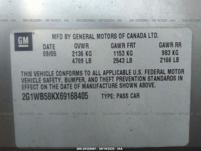 CHEVROLET IMPALA 2006 LS SEDAN 3.5L 3500 V6 SFI VIN: 2G1WB58KX69168405