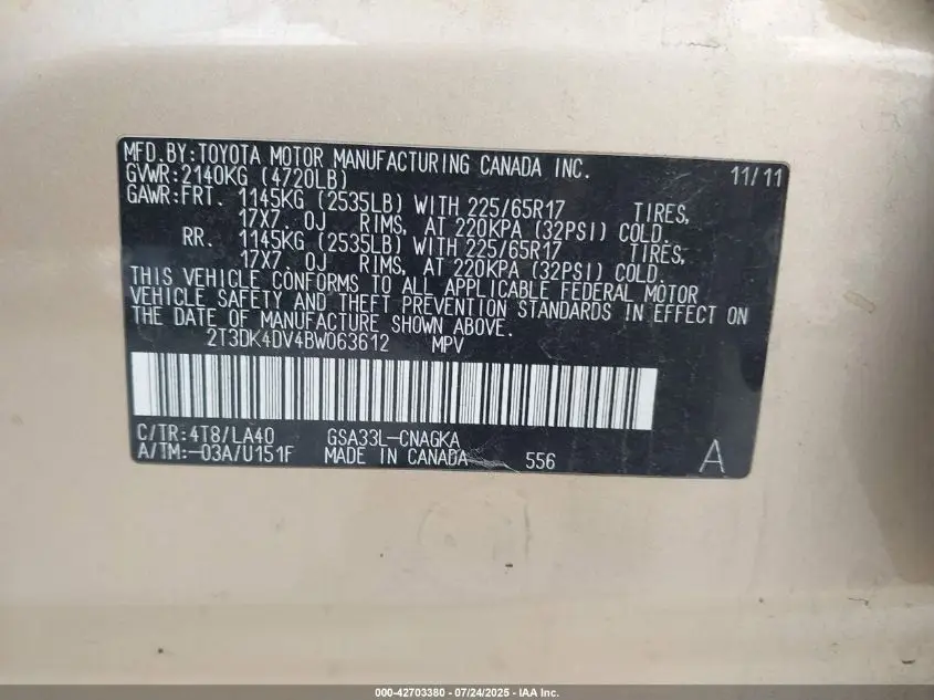 TOYOTA RAV4 HIGH 2011