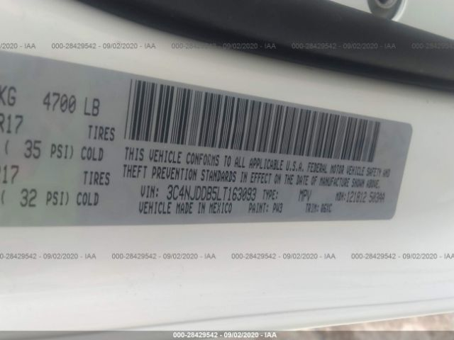JEEP COMPASS 2020 MP 2.4L I4 Zero Evap M-Air w/ESS VIN: 3C4NJDDB5LT163093