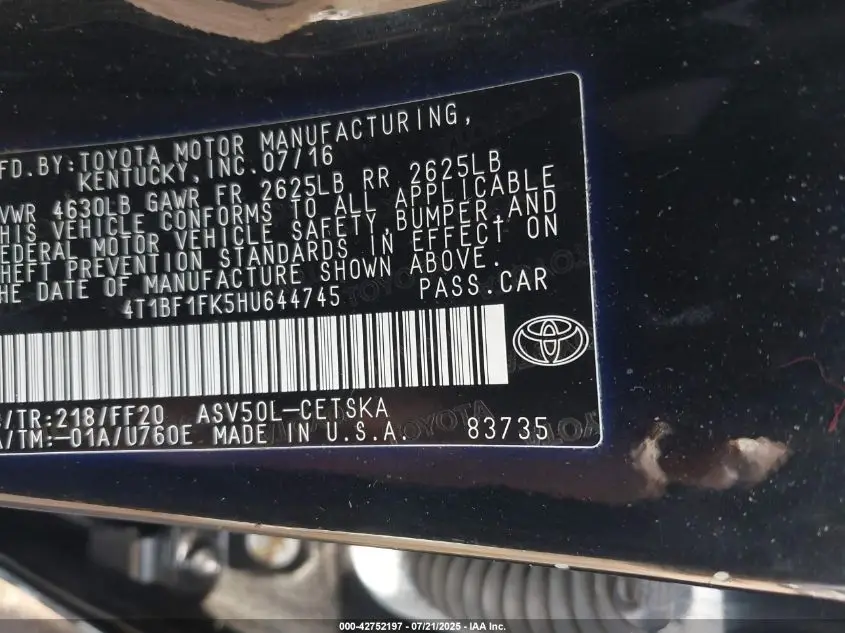 4T1BF1FK5HU644745