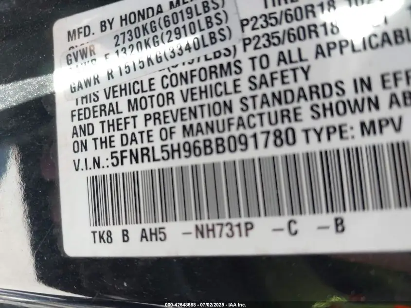 5FNRL5H96BB091780