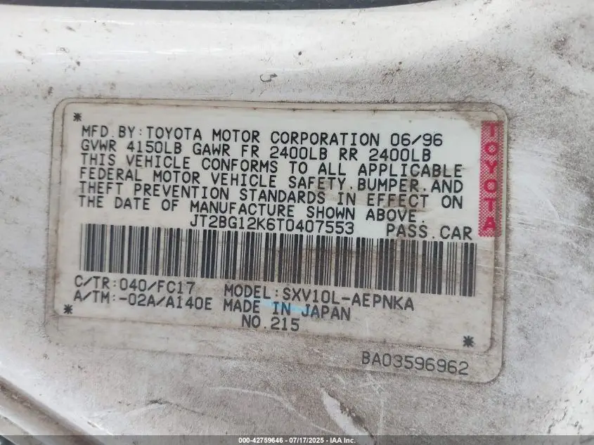 JT2BG12K6T0407553