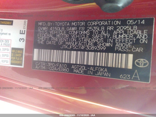 SCION TC 2015 AGT20L 2.5L I-4 w/Dual VVT-i VIN: JTKJF5C74F3089399