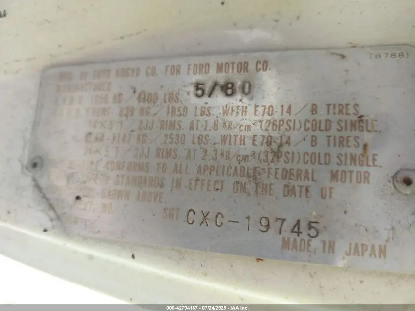 FORD COURIER 1980 White VIN: SGTCXC19745