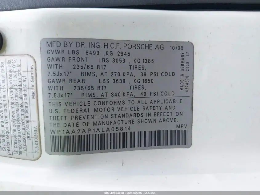 PORSCHE CAYENNE TYPE 9PA 2010