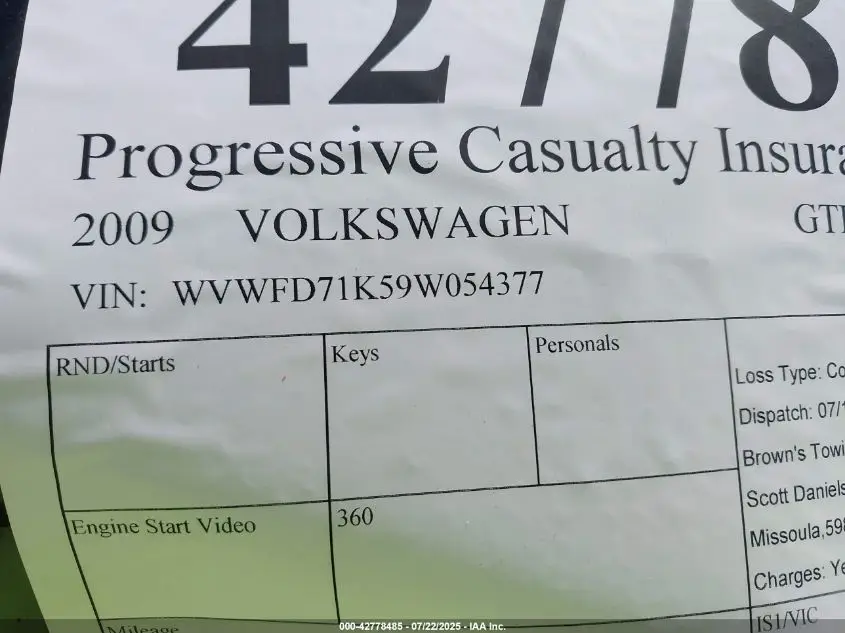 VOLKSWAGEN GTI 2009 2-DOOR 2.0L I-4 DI, DOHC, VVT, turbo, 200HP VIN: WVWFD71K59W054377