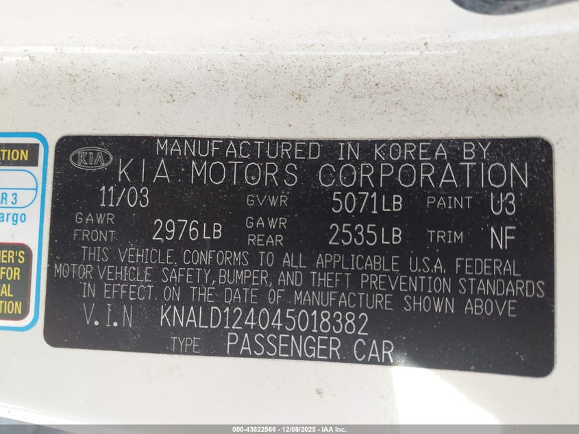 KIA AMANTI 2004 Brown 3.5L V-6 DOHC, 200HP VIN: KNALD124045018382