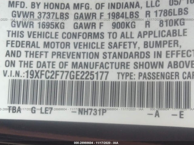 HONDA CIVIC SEDAN 2016 EX 2.0L I-4 DOHC 16-Valve i-VTEC VIN: 19XFC2F77GE225177