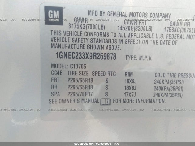 CHEVROLET TAHOE 2009 LT Vortec 5.3L V8 SFI FlexFuel VIN: 1GNEC233X9R269878