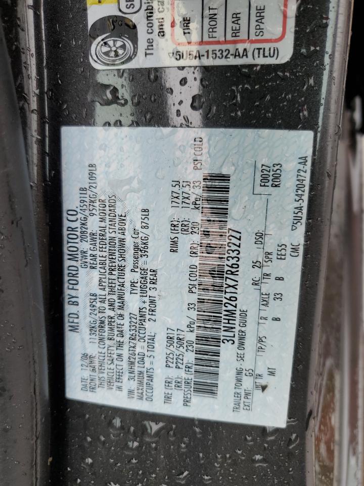 LINCOLN MKZ 2007 ZEPHYR GRAY 3.5L 6 VIN: 3LNHM26TX7R633227