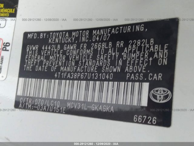 4T1FA38P67U131040