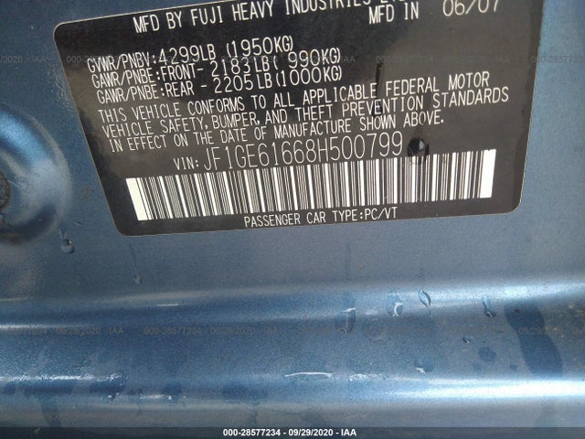 SUBARU IMPREZA SEDAN 2008 2.5I 2.5L SOHC SMPI 16-valve 4-cyl VIN: JF1GE61668H500799