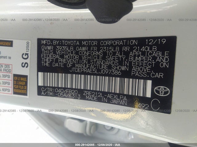 TOYOTA COROLLA 2020 LE 1.8L I-4 DOHC 16-Valve -inc VIN: JTDEPRAE5LJ097386