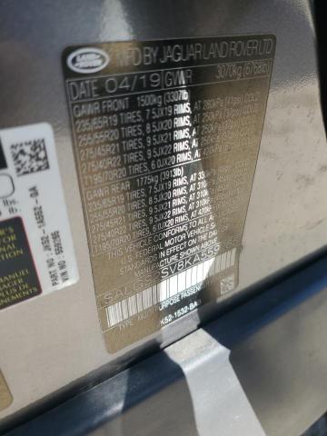 LAND ROVER RANGEROVER 2019 RANGE ROVE GRAY 3.0L 6 VIN: SALGS2SV8KA559265